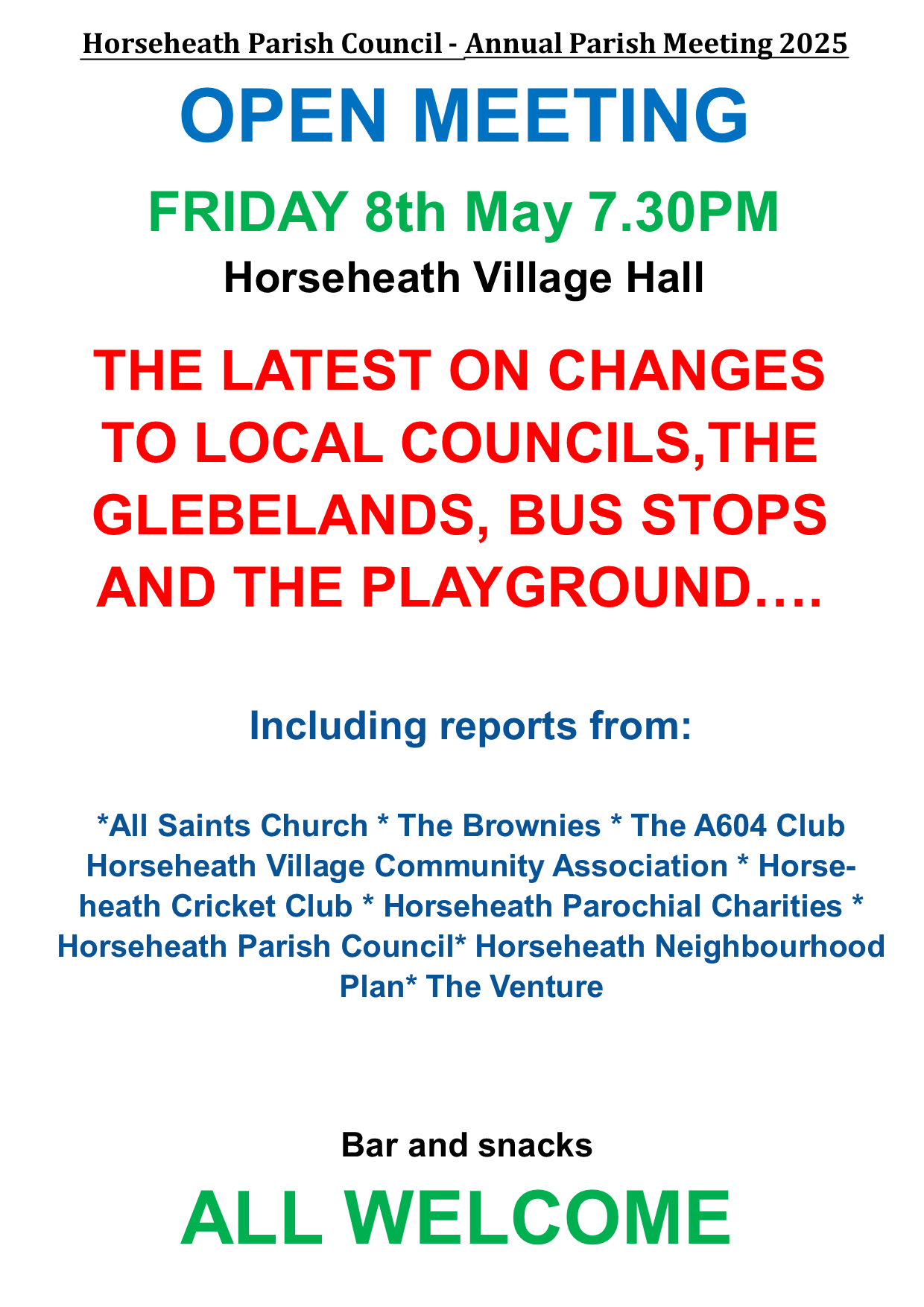 Annual Parish Meeting for everyone hosted by Horseheath Parish Council